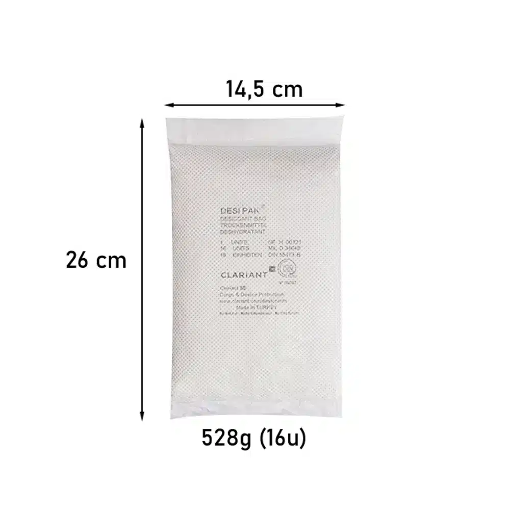 Nem alıcı 528gr silikajel (16 ünite) Desipak paketleri, devasa ağır sanayi sandıklarında ve makine ihracatında oluşan yoğuşmayı sıfırlar. 1 kolide 30 adet bulunur. Nitrosatış güvencesiyle sunulan bu ekstra yüksek emiş gücüne sahip çözümle ürünlerinizi paslanmaktan kesin olarak kurtarın.