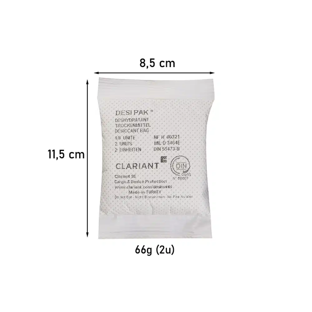 Endüstriyel paketleme hesaplamalarında 2 Ünite (66gr) nem alıcı paketler, bariyer folyolarla kapatılmış yaklaşık 60 ila 80 litrelik orta hacimli ambalajların içindeki rutubeti kontrol altında tutar. Özellikle yedek parça kutularında 1 adet 66gr silikajel veya Desipak kullanımı küresel bir standarttır. Maksimum verim için koruyucu paketi Nitrosatış kolisinden çıkardığınız an bekletmeden ürün ambalajına eklemeli ve dış atmosferle teması anında kesmelisiniz.